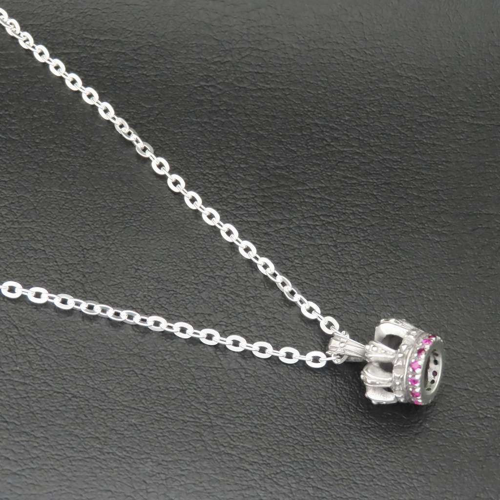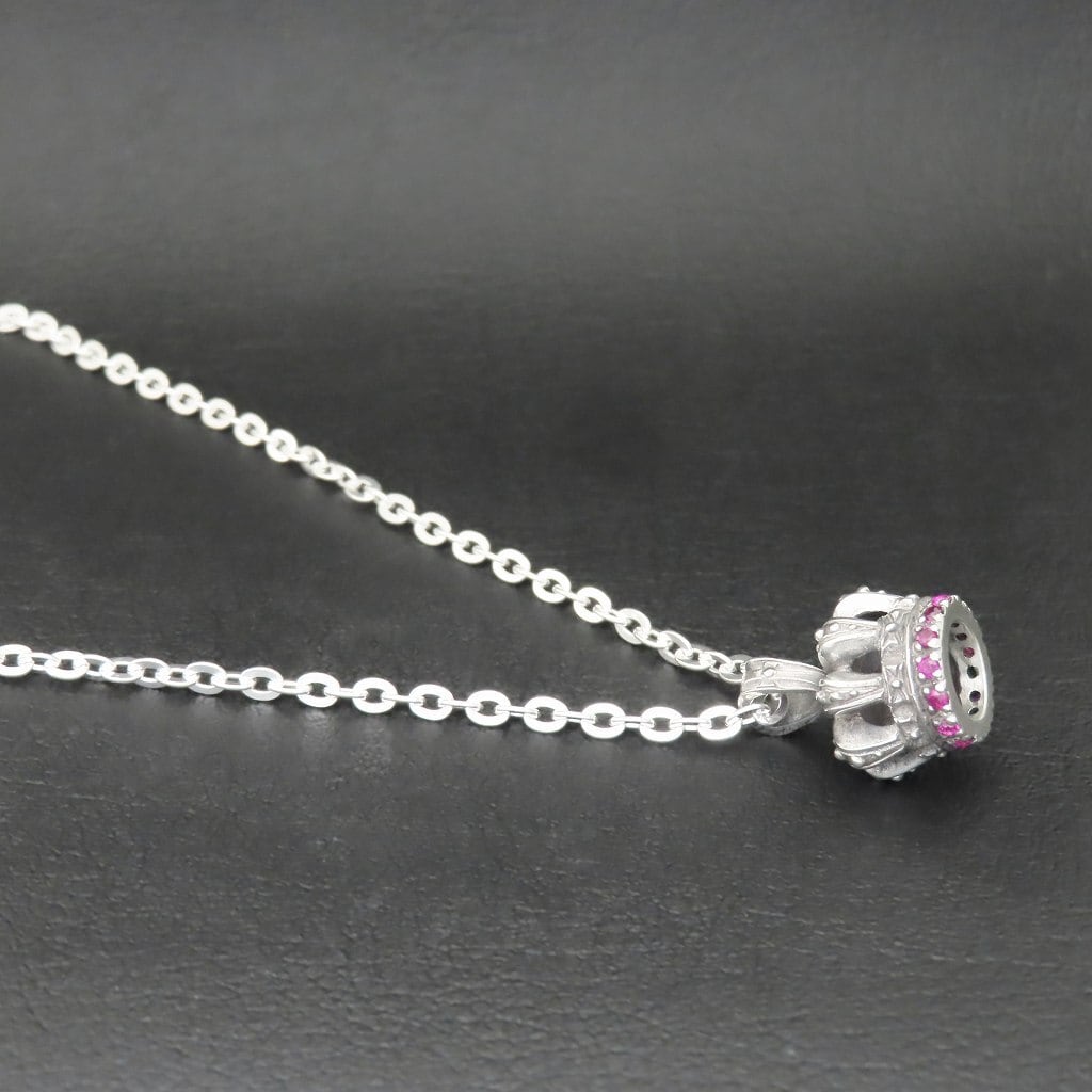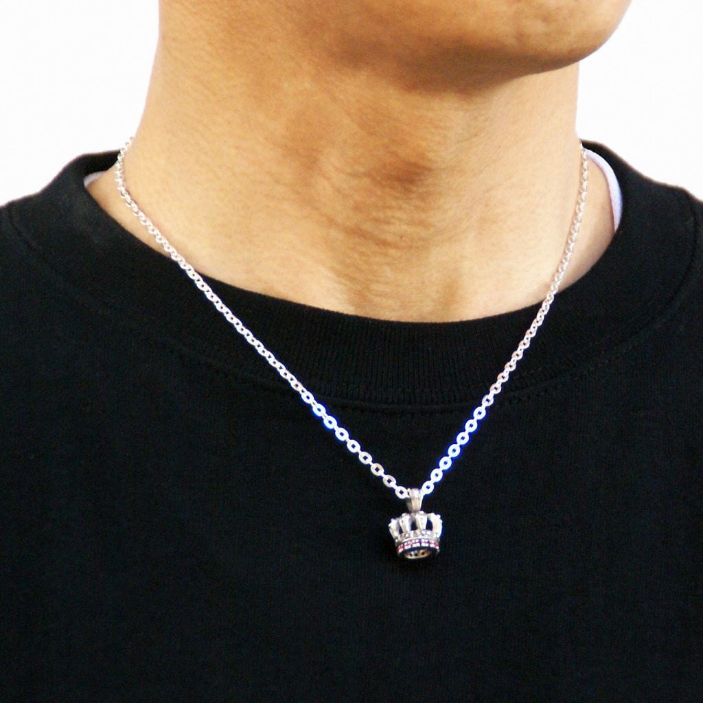 クラウンネックレス シルバー925 合成ルビー 【刻印無料】 クラウン 王冠 ネックレス ペンダント シルバーアクセサリー 7月 誕生石 メンズ ユニセックス クリスマス 誕生日 母の日 プレゼント ハンドメイド 手作り 彫金 ジュエリーボックス Grand Galleria グランドガレリア