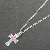 クロスネックレス シルバー925 マルチカラー 【刻印無料】 キュービックジルコニア 7色 虹色 十字架 クロス ネックレス ペンダント キラキラ シルバーアクセサリー メンズ ユニセックス 母の日 キリスト クリスマス 誕生日 プレゼント 箱 Grand Galleria グランドガレリア