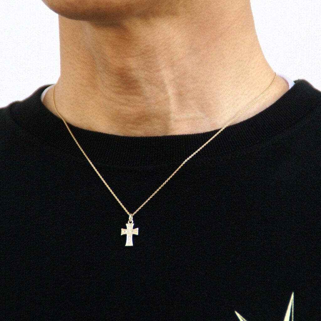 クロスネックレス K10YG 【刻印無料】 ダイヤモンド 十字架 クロス ネックレス ペンダント K10 イエローゴールド 金 ゴールド キラキラ シルバーアクセサリー メンズ ユニセックス 母の日 キリスト クリスマス 誕生日 プレゼント 箱 Grand Galleria グランドガレリア