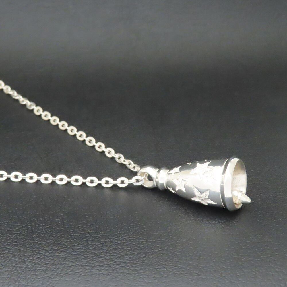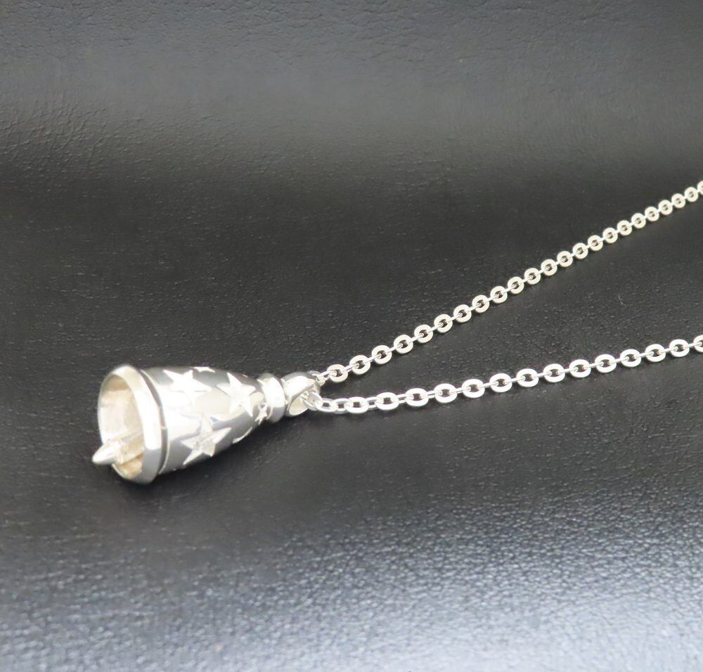 スターベルネックレス 白 シルバー925 【刻印無料】 ベル 鈴 鐘 スター 星 ネックレス ペンダント シルバー シルバーアクセサリー メンズ ユニセックス クリスマス 誕生日 プレゼント ハンドメイド 手作り 彫金 ジュエリーボックス 箱入り Grand Galleria グランドガレリア