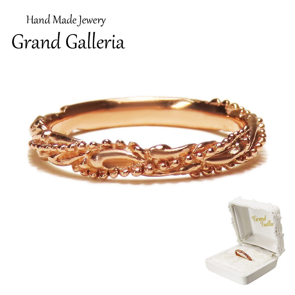 K18 ピンクゴールド唐草リング 【刻印無料】 結婚指輪 マリッジリング 結婚 結婚式 マリッジ ペア リング 指輪 ペアリング ゴールド 金 ハンドメイド 手作り レディース メンズ 誕生日 クリスマス プレゼント ギフト包装 彫金 箱入り Grand Galleria グランドガレリア