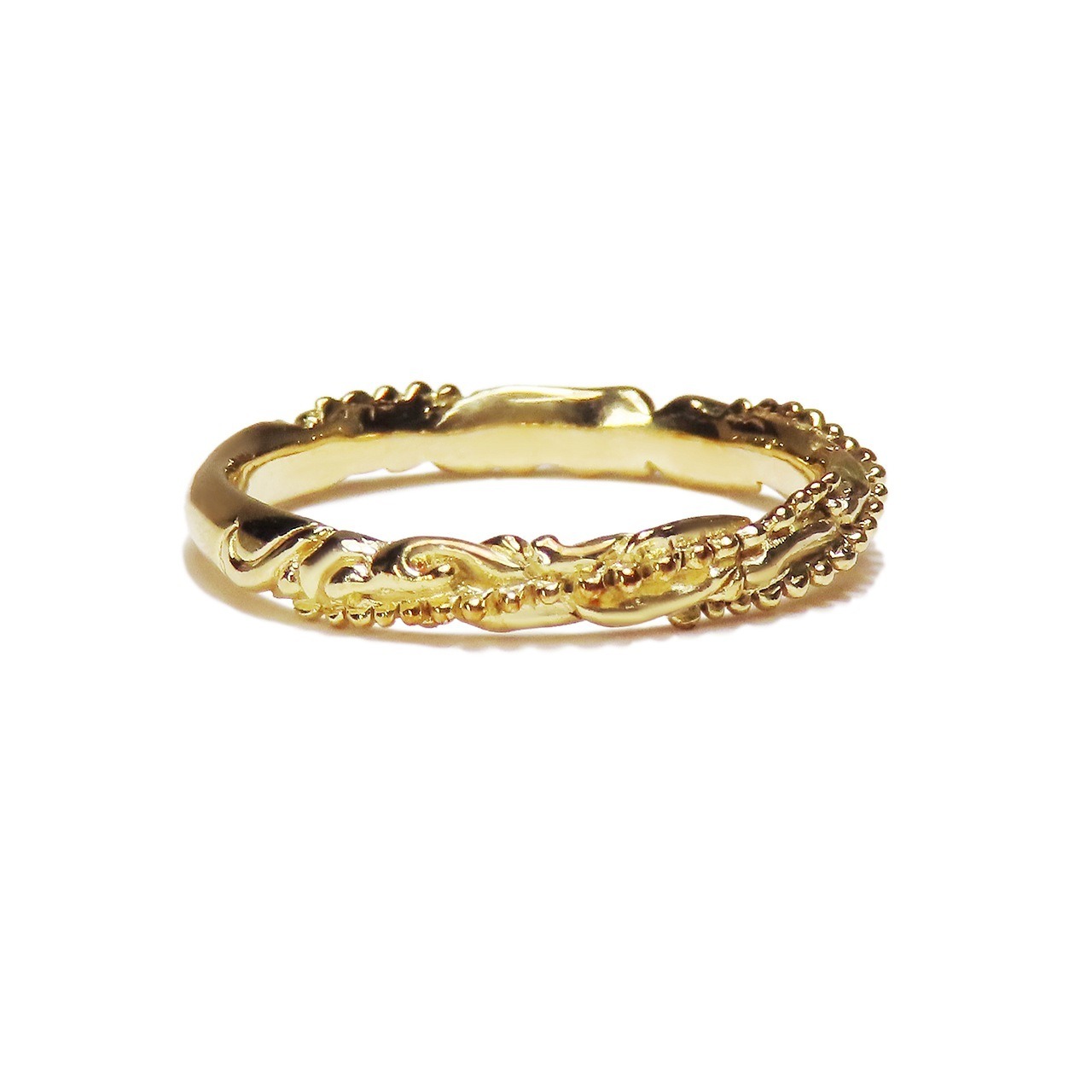 K18 イエローゴールド唐草リング 【刻印無料】 結婚指輪 マリッジリング 結婚 結婚式 マリッジ ペア リング 指輪 ペアリング ハンドメイド 手作り メンズ レディース 誕生日 クリスマス プレゼント ギフト包装 彫金 箱入り Grand Galleria グランドガレリア