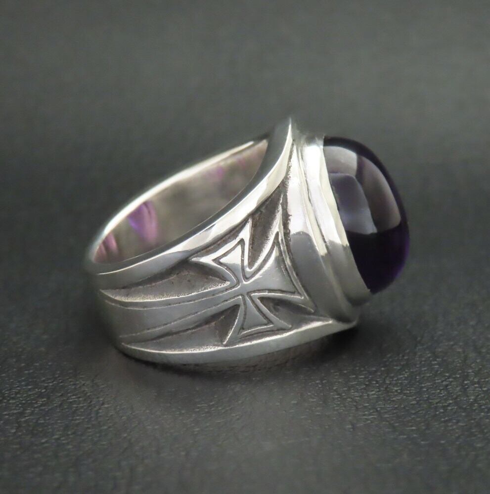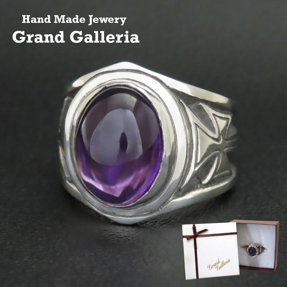 アメジストクロスリング シルバー925 指輪 【刻印無料】 アメジスト 紫水晶 クロス 十字架 リング 天然石 シルバーアクセサリー メンズ クリスマス キリスト 誕生日 記念日 お祝い 彼氏 男性 父の日 プレゼント ハンドメイド 彫金 ボックス Grand Galleria グランドガレリア