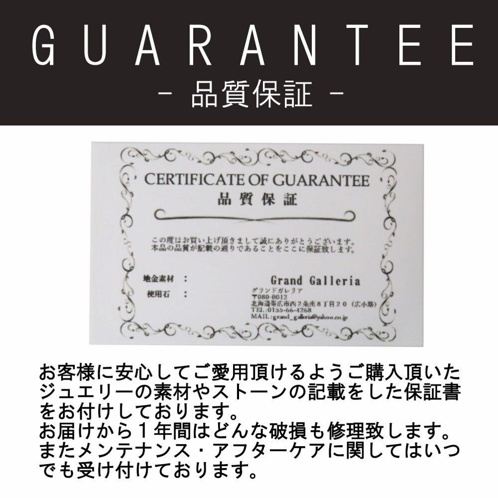 私共では出来る限り長く使用して頂けるよう通常の使用による石の外れ(石を紛失していないこと)、アイテムの切れ、折れ、歪みはご購入から1年間は全て無償で修理させて頂きます。