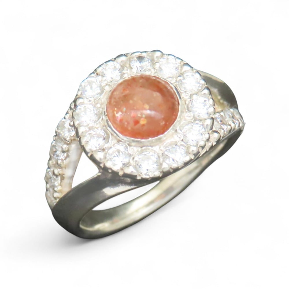 サンストーンリング 指輪 シルバー925 【刻印無料】サンストーン へリオライト 太陽の石 リング 指輪 キュービックジルコニア シルバーアクセサリー レディース クリスマス 誕生日 プレゼント 彼女 母の日 ピンキーリング ハンドメイド 箱 Grand Galleria グランドガレリア