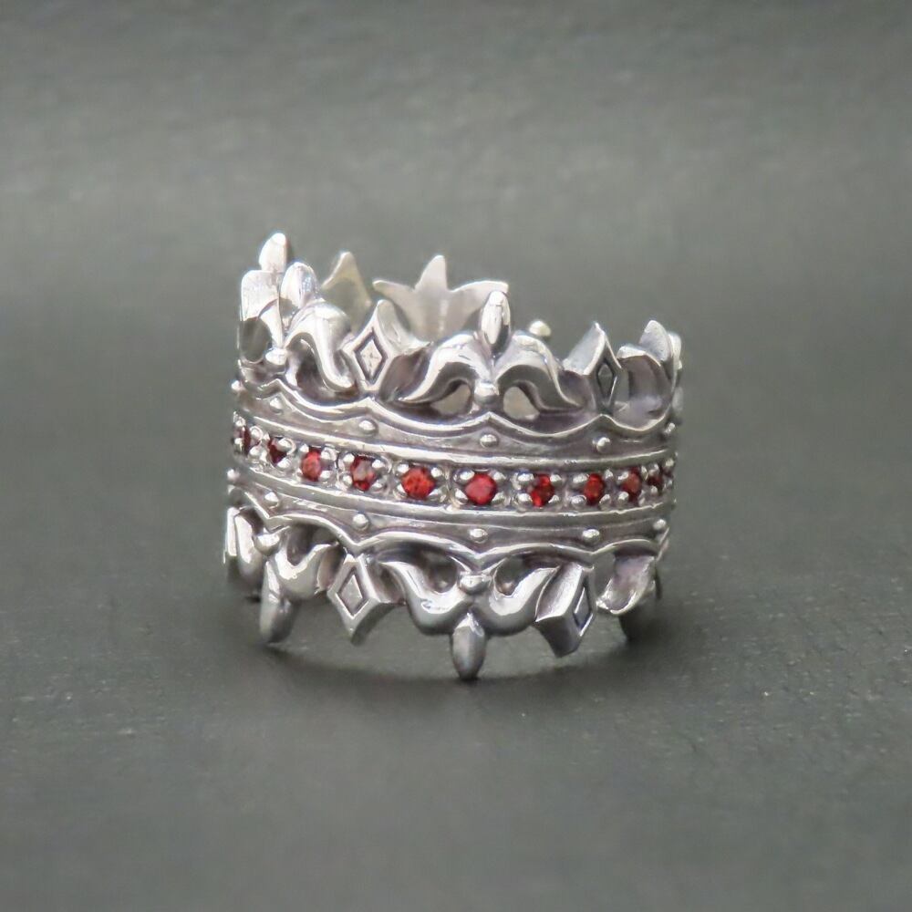 クラウンリング シルバー925 指輪 【刻印無料】 クラウン 王冠 リング シルバーアクセサリー メンズ 選べる 天然石 誕生石 男性 彼氏 クリスマス 誕生日 プレゼント ハンドメイド 手作り 彫金 ジュエリーボックス 箱 Grand Galleria グランドガレリア 1年補償 1年保証