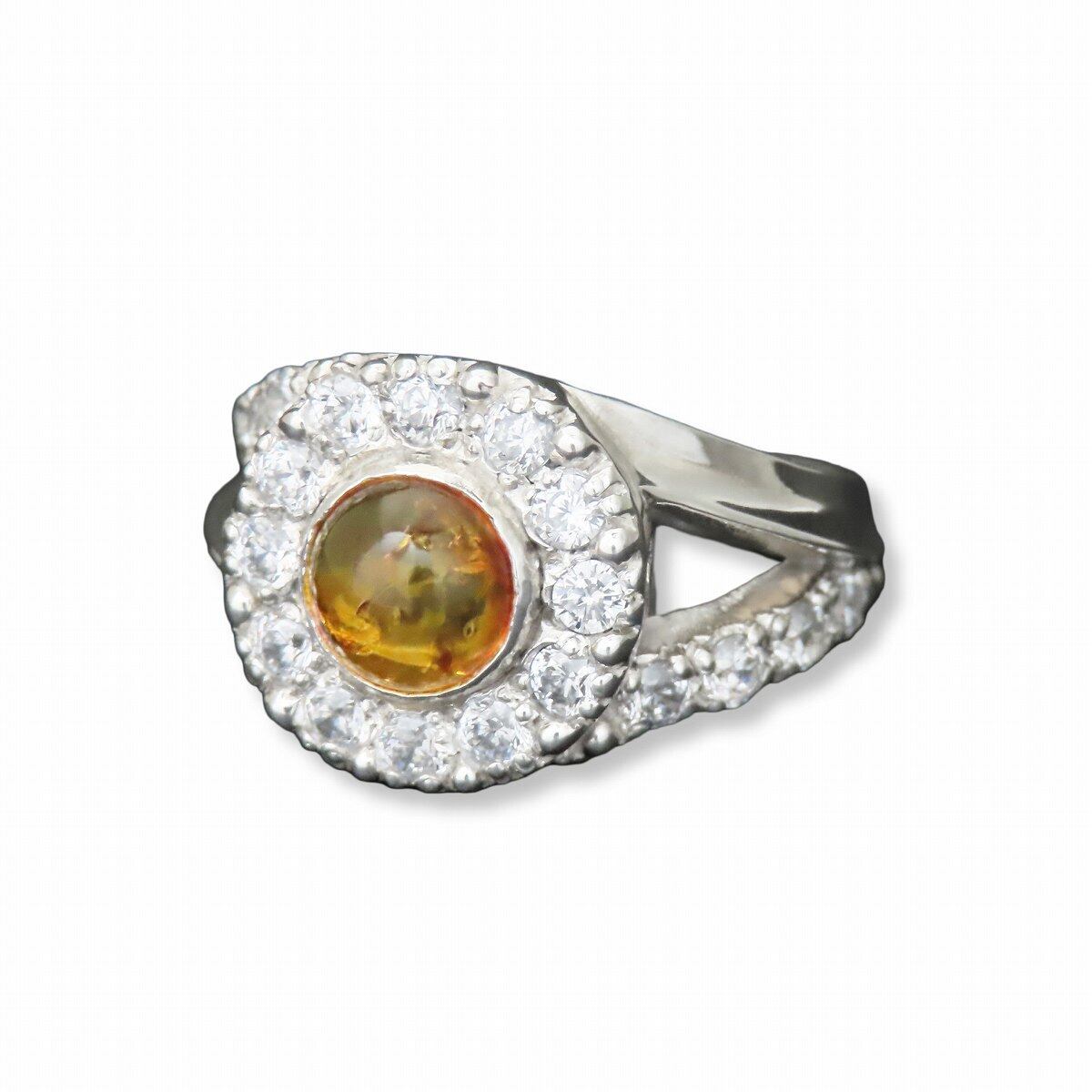琥珀リング 指輪 シルバー925 【刻印無料】琥珀 アンバー リング 指輪 キュービックジルコニア シルバーアクセサリー レディース クリスマス 誕生日 プレゼント 彼女 母の日 ピンキーリング ハンドメイド 手作り ジュエリーボックス 箱入り Grand Galleria グランドガレリア