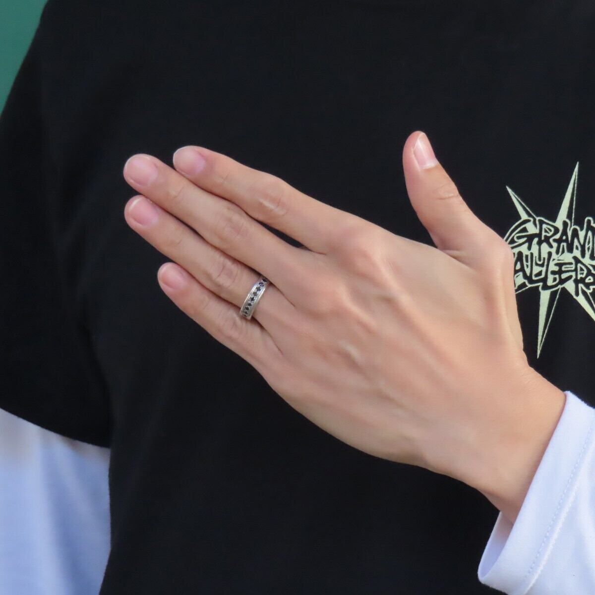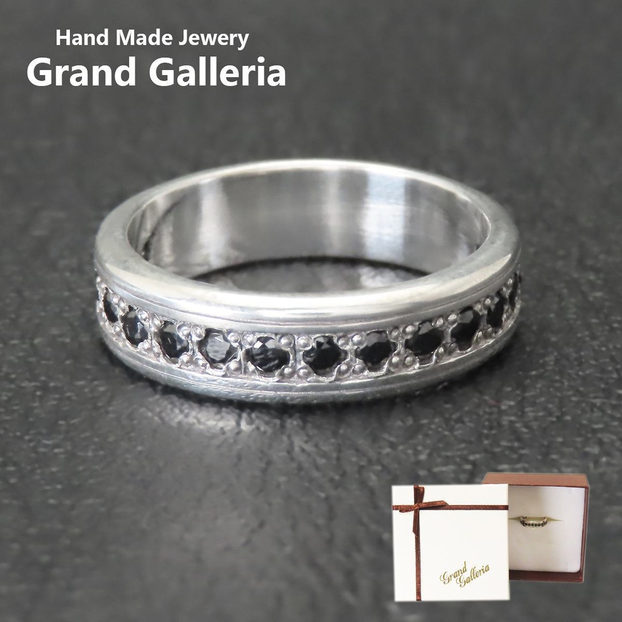 ハーフ エタニティ リング 指輪 シルバー925 【刻印無料】 ブラック エタニティリング シルバーアクセサリー メンズ ユニセックス ペア クリスマス 誕生日 プレゼント ジルコニア ストーン ハンドメイド 手作り 彫金 ジュエリーボックス 箱 Grand Galleria グランドガレリア