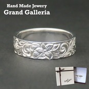ハワイアンジュエリー リング 指輪 白 ハイビスカス スクロール シルバー925 【刻印無料】 花 波 波模様 シルバーアクセサリー メンズ レディース ユニセックス ペアリング 誕生日 プレゼント ハンドメイド 手作り 彫金 ジュエリーボックス Grand Galleria グランドガレリア