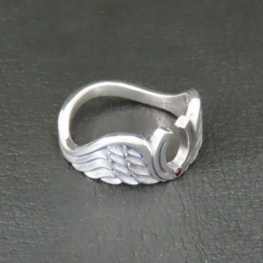 ホースシューウィングリング シルバー925 指輪 【刻印無料】 馬蹄 ホースシュー 翼 羽 ウィング リング シルバーアクセサリー メンズ クリスマス 誕生日 プレゼント 男性 彼氏 天然石 誕生石 ハンドメイド 手作り 彫金 ジュエリーボックス Grand Galleria グランドガレリア