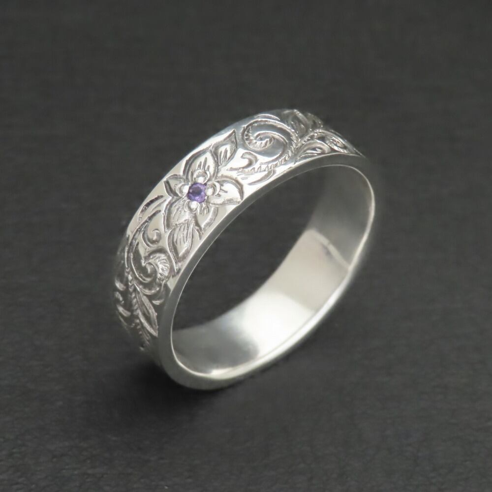 ハワイアンジュエリーリング 黒 ハイビスカス スクロール シルバー925 【刻印無料】 花 波 波模様 リング 指輪 選べる 天然石 誕生石 シルバーアクセサリー メンズ レディース ユニセックス ペアリング 誕生日 クリスマス 手作り 彫金 ジュエリーボックス 箱 Grand Galleria
