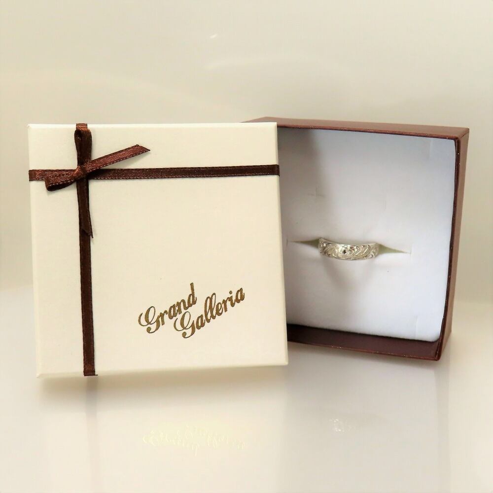 ハワイアンジュエリーリング 白 ハイビスカス スクロール シルバー925 【刻印無料】 花 波 波模様 リング 指輪 選べる 天然石 誕生石 シルバーアクセサリー メンズ レディース ユニセックス ペアリング 誕生日 クリスマス 手作り 彫金 ジュエリーボックス 箱 Grand Galleria