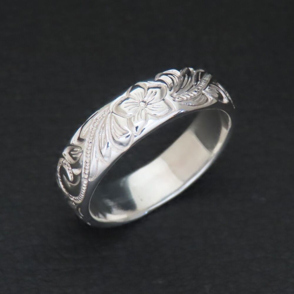 ハワイアンジュエリー リング 指輪 白 ハイビスカス スクロール シルバー925 【刻印無料】 花 波 波模様 シルバーアクセサリー メンズ レディース ユニセックス ペアリング 誕生日 プレゼント ハンドメイド 手作り 彫金 ジュエリーボックス Grand Galleria グランドガレリア