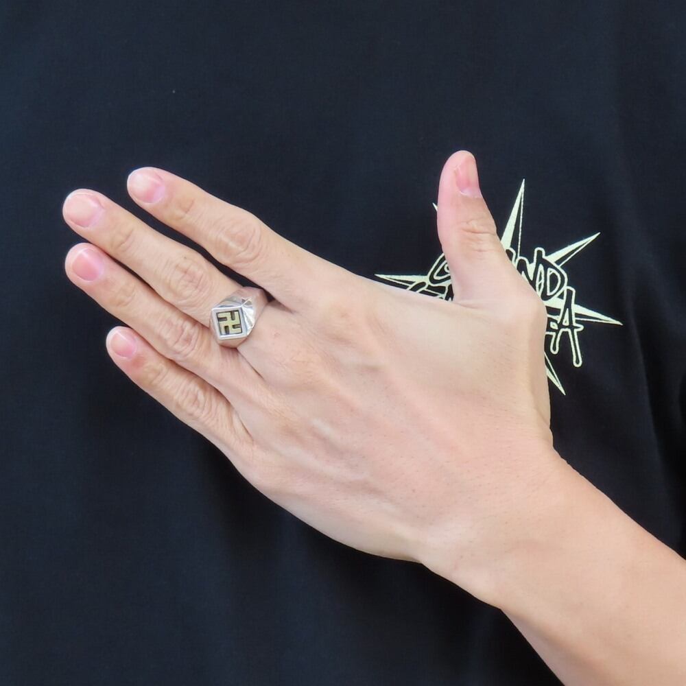 卍リング 指輪 シルバー925 × 真鍮 【刻印無料】 卍 まんじ マンジ 印台 リング シルバーアクセサリー メンズ ブラス クリスマス 誕生日 プレゼント 記念日 父の日 男性 彼氏 ハンドメイド 手作り 彫金 ジュエリーボックス 箱入り Grand Galleria グランドガレリア