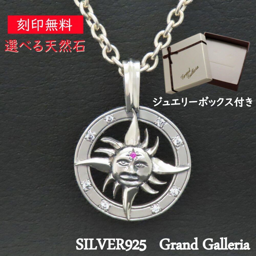 太陽ネックレス シルバー925 【刻印無料】 太陽 サン ネックレス ペンダント シルバーアクセサリー メンズ 選べる 天然石 誕生石 キュービックジルコニア ハンドメイド 彫金 ジュエリーボックス 箱 クリスマス 誕生日 プレゼント Grand Galleria グランドガレリア