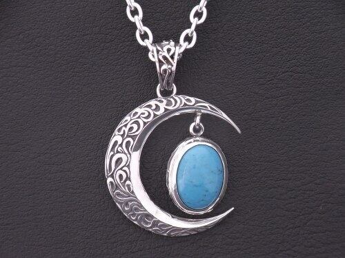 【送料無料】【Grand Galleria グランドガレリア】 月 三日月 クレセント ムーン 唐草模様 アラベスク ネックレス ペンダント ターコイズ 天然石 35~60cm シルバーアクセサリー シルバー925 ハンドメイド 手作り メンズ 彼氏 誕生日 プレゼント ギフト包装