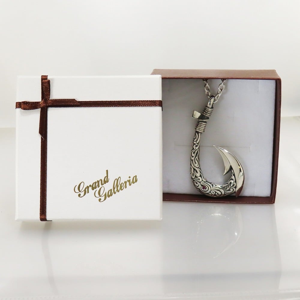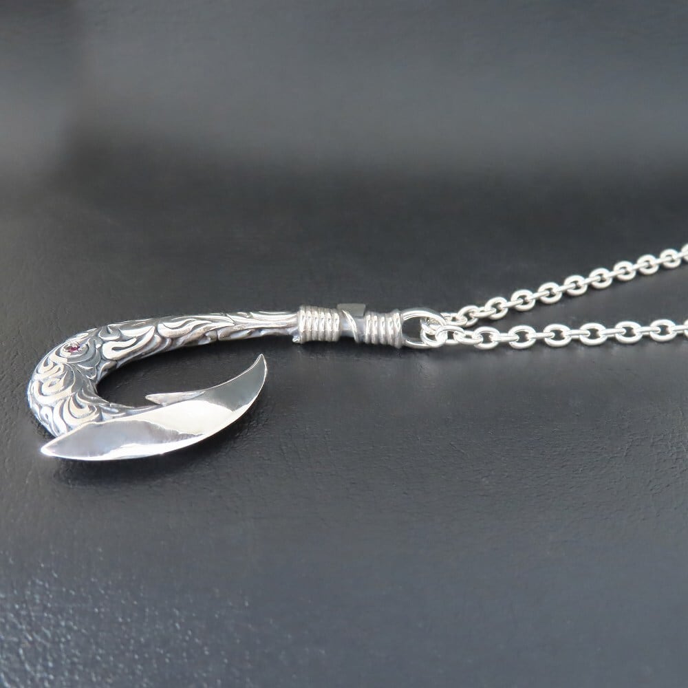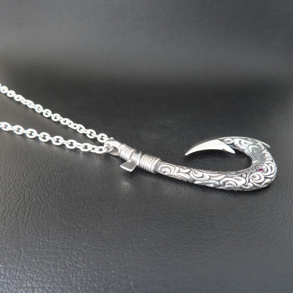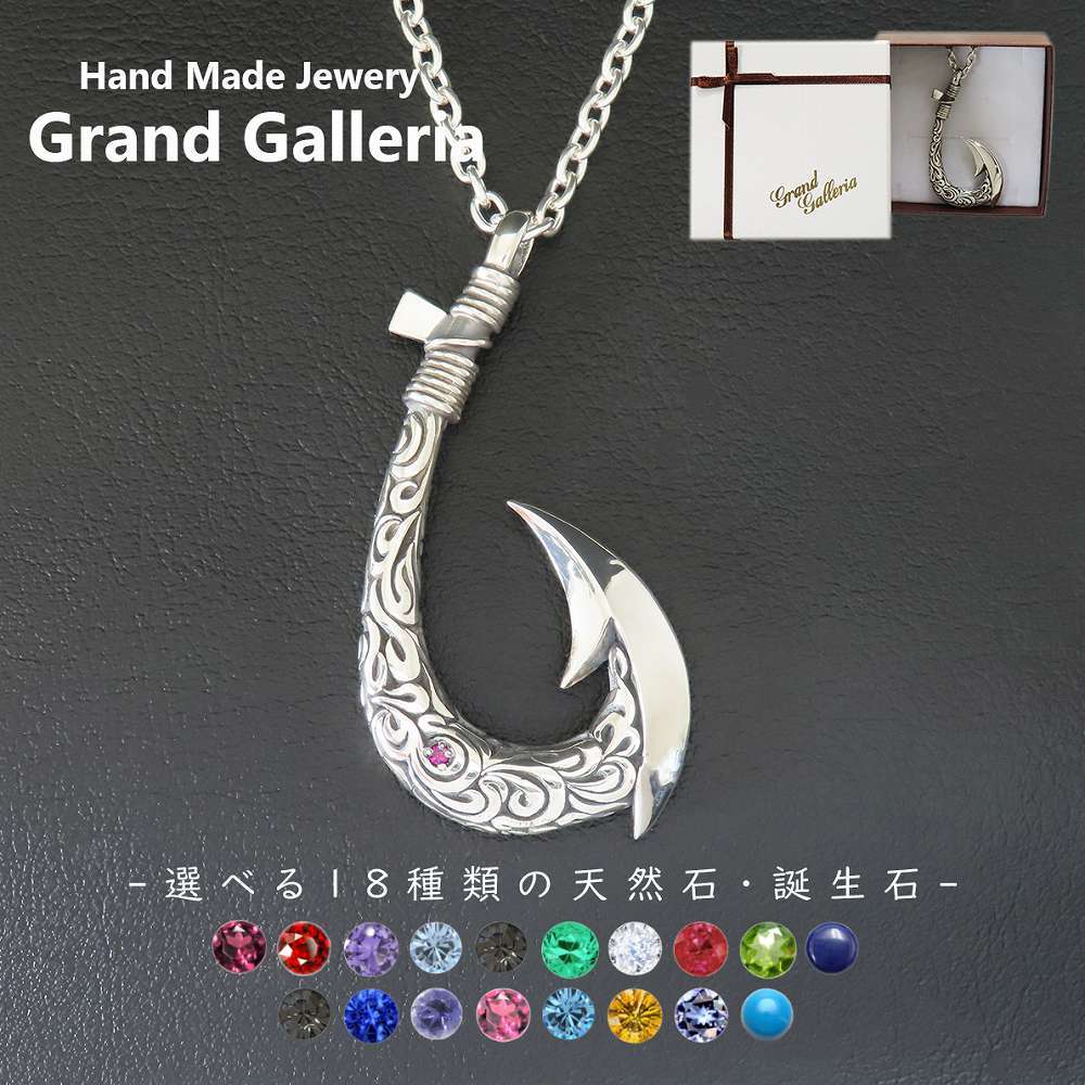 釣り針ネックレス シルバー925 【刻印無料】 アングラー 釣り針 フィッシュフック ネックレス 唐草 唐草模様 アラベスク ペンダント シルバーアクセサリー メンズ クリスマス 誕生日 プレゼント 選べる 天然石 誕生石 ハンドメイド 彫金 ジュエリーボックス Grand Galleria
