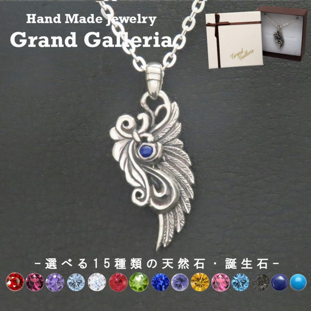 ドラゴンウィングネックレス シルバー925 【刻印無料】 龍 ドラゴン 翼 ウィング 羽 羽根 ネックレス ペンダント 選べる 誕生石 天然石 ハンドメイド シルバーアクセサリー メンズ 男性 彼氏 誕生日 プレゼント 箱入り ジュエリーボックス Grand Galleria グランドガレリア