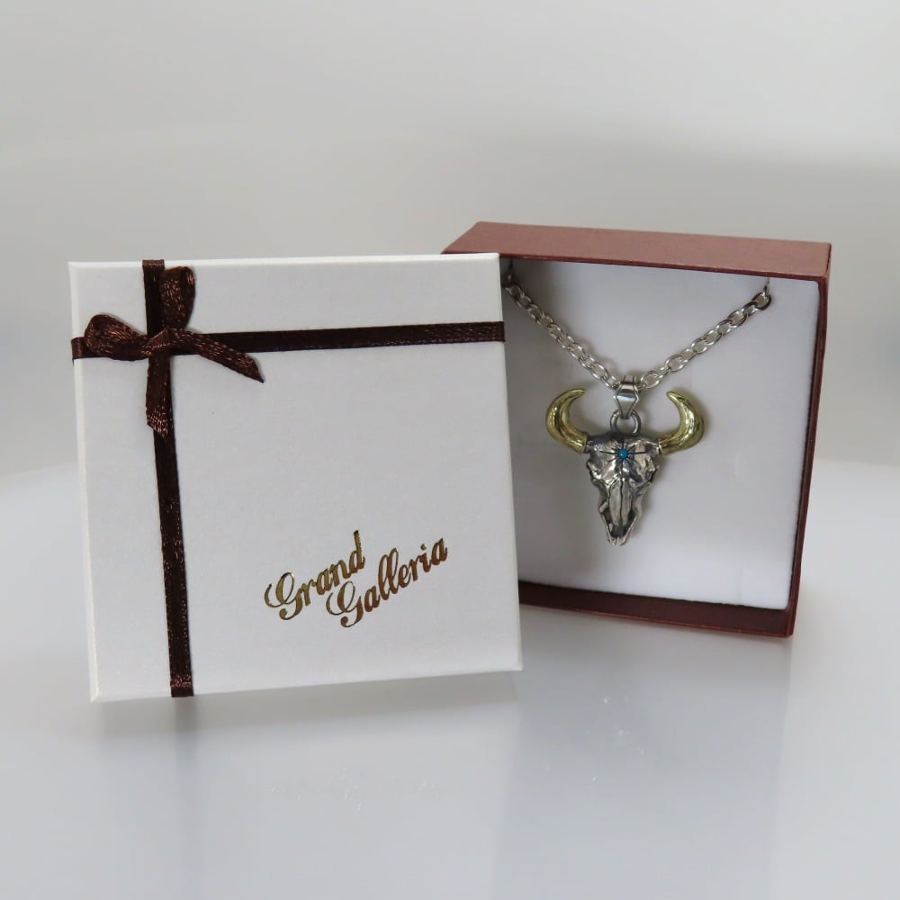 バッファロースカルネックレス シルバー925 × 真鍮 【刻印無料】 バッファロー スカル 太陽 サン ネックレス ペンダント 選べる 天然石 誕生石 シルバーアクセサリー メンズ クリスマス 誕生日 記念日 プレゼントハンドメイド 彫金 ジュエリーボックス 箱 Grand Galleria