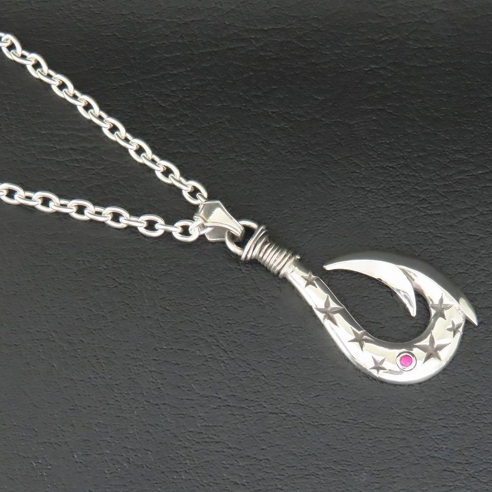 釣り針ネックレス シルバー925 【刻印無料】 アングラー フィッシュフック 星 スター ネックレス ペンダント 選べる 天然石 誕生石 シルバーアクセサリー メンズ ユニセックス 父の日 誕生日 プレゼント ハンドメイド ジュエリーボックス 箱 Grand Galleria グランドガレリア