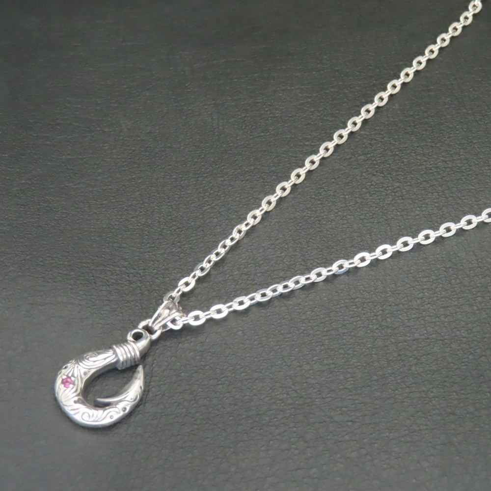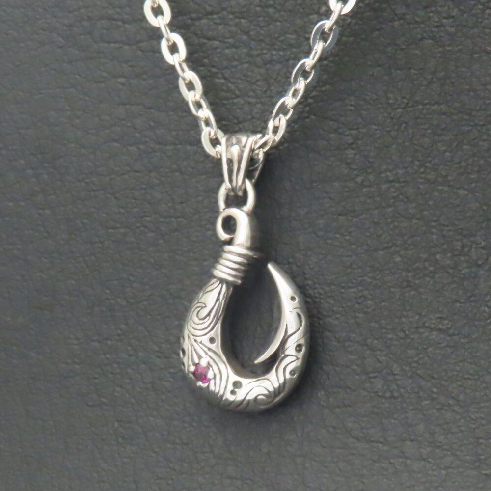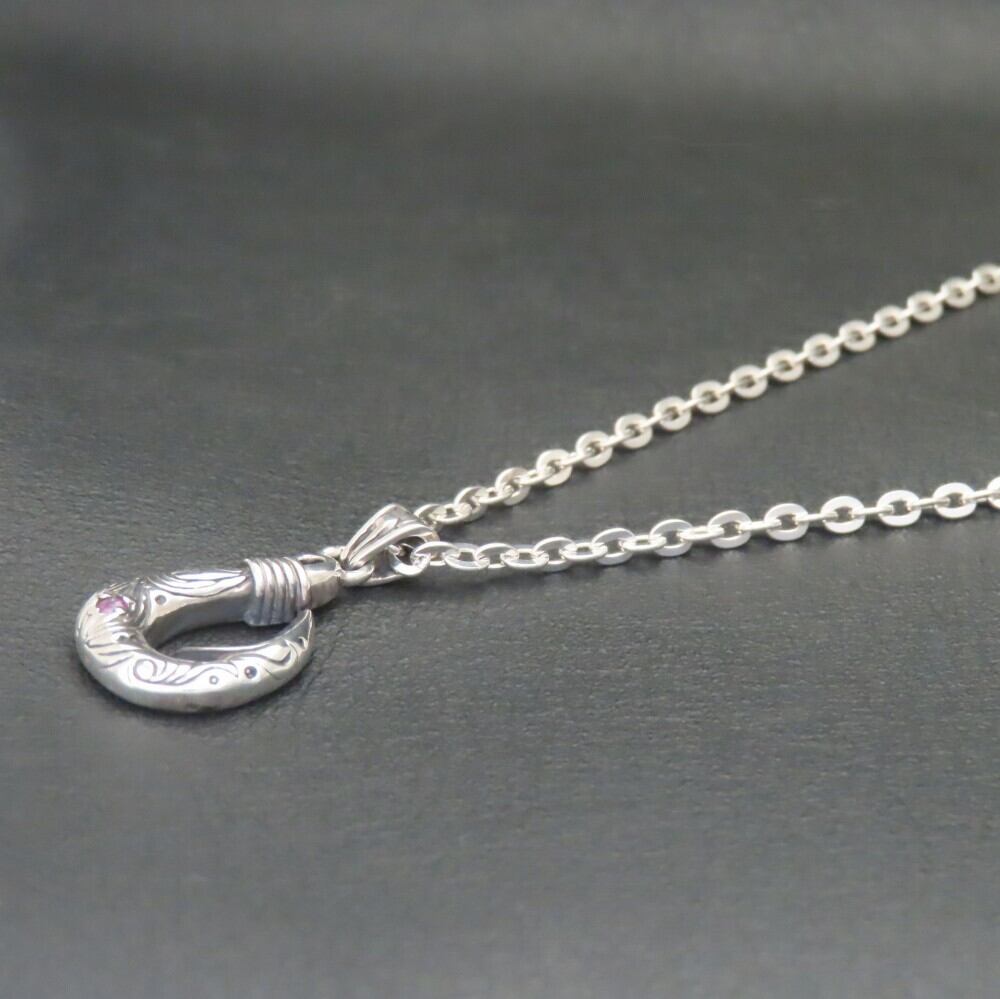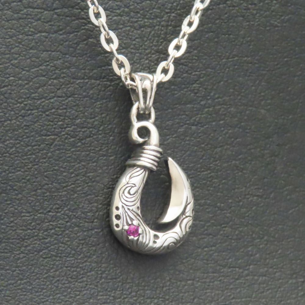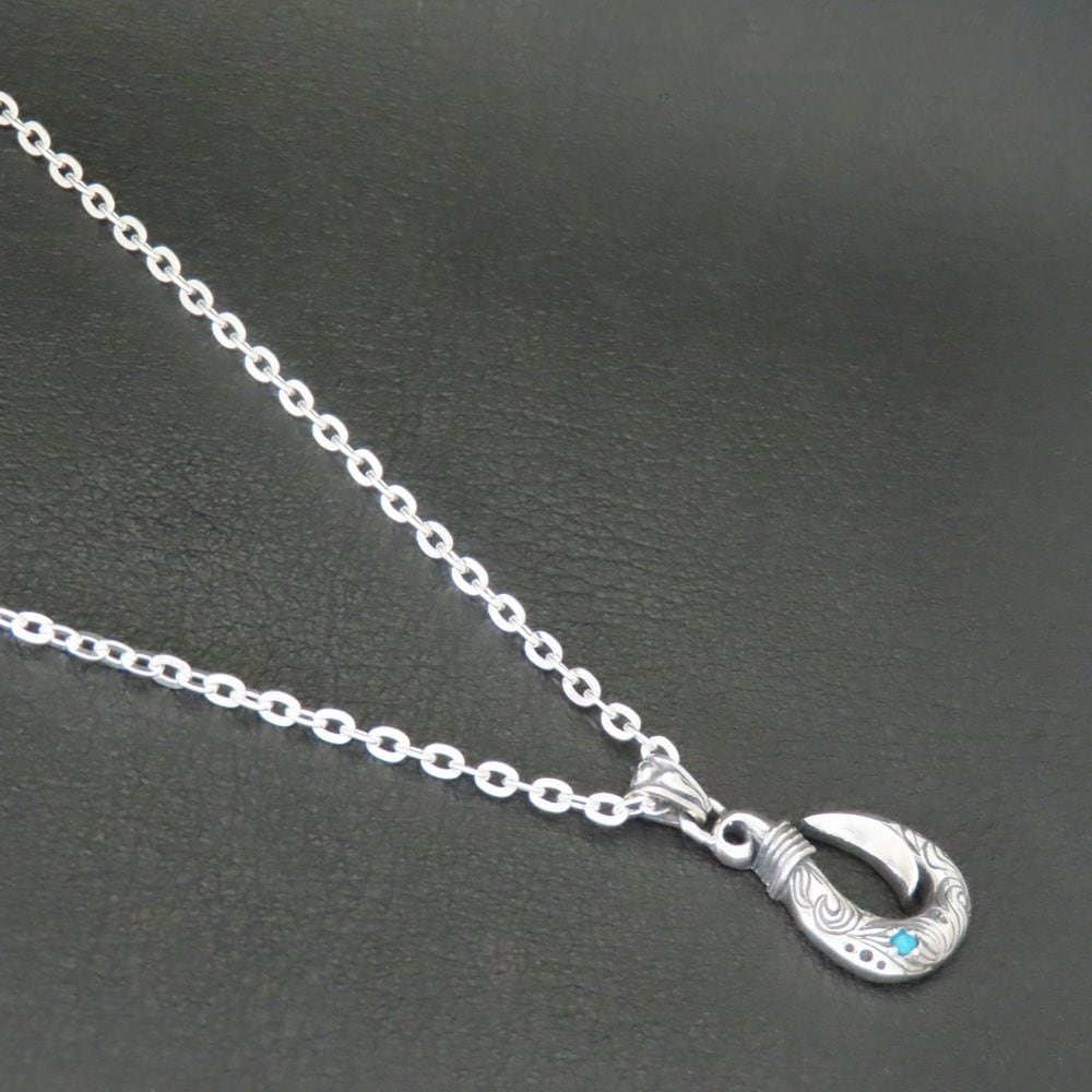 波模様釣り針ネックレスS シルバー925 【刻印無料】 フィッシュフック 釣り針 波 波模様 海 アングラー ネックレス ペンダント 選べる 天然石 誕生石 シルバーアクセサリー メンズ 父の日 プレゼント ハンドメイド ジュエリーボックス 箱 Grand Galleria グランドガレリア