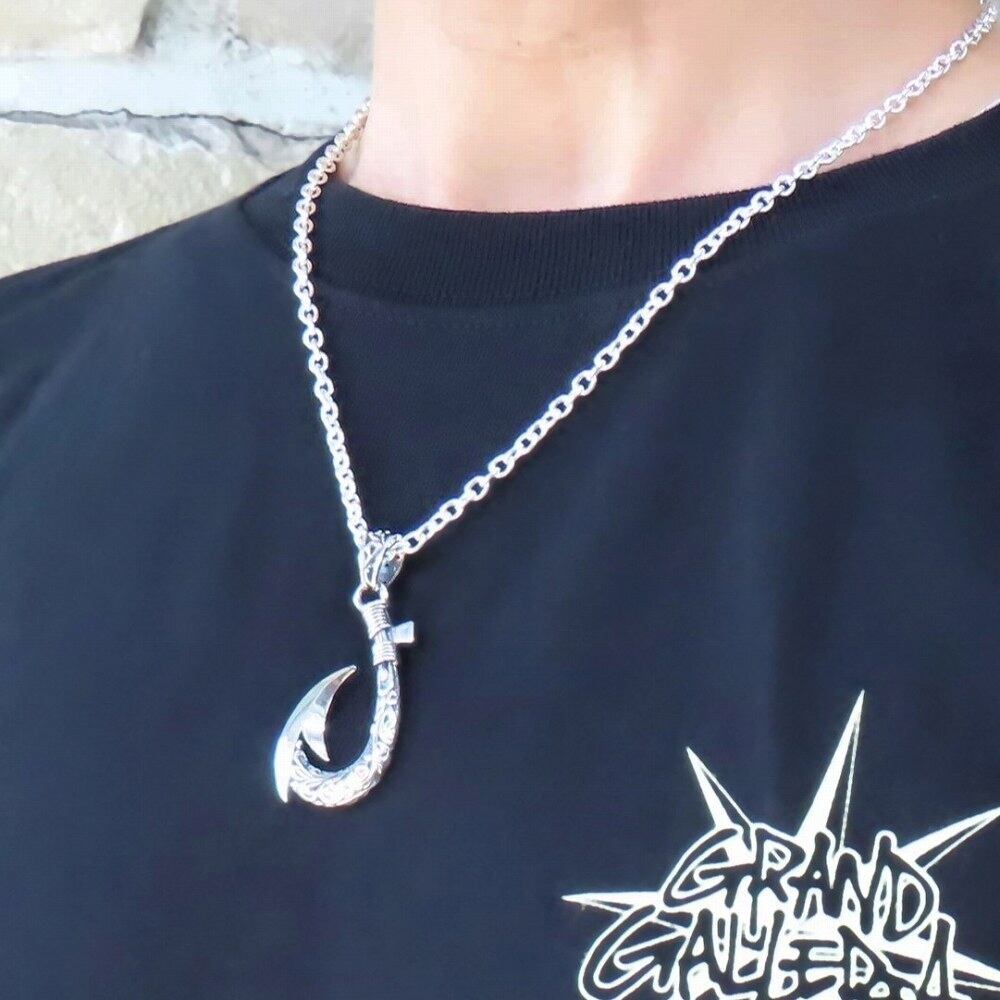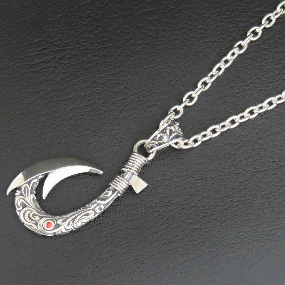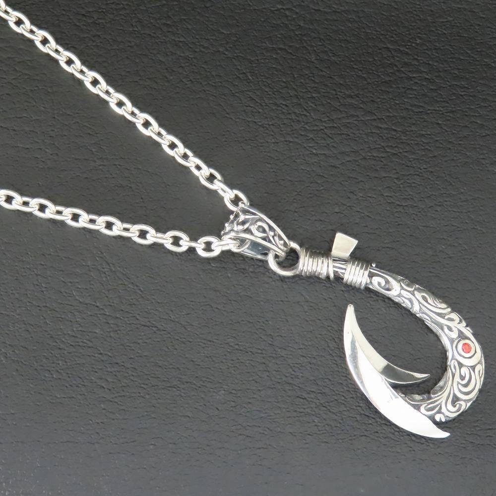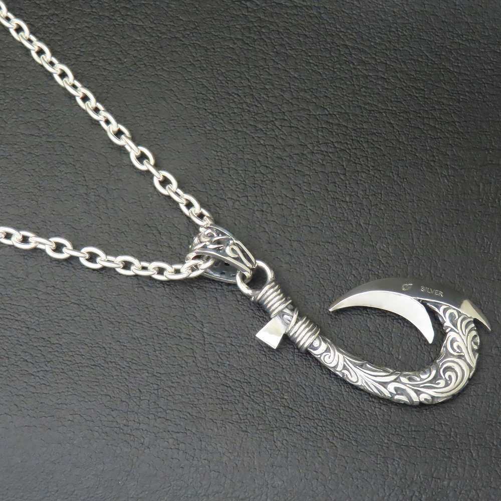 釣り針ネックレス シルバー925 【刻印無料】 釣り針 フィッシュフック 唐草 唐草模様 アラベスク ペンダント シルバーアクセサリー メンズ クリスマス 誕生日 プレゼント 天然石 誕生石 ハンドメイド 手作り 彫金 ジュエリーボックス 箱 Grand Galleria グランドガレリア