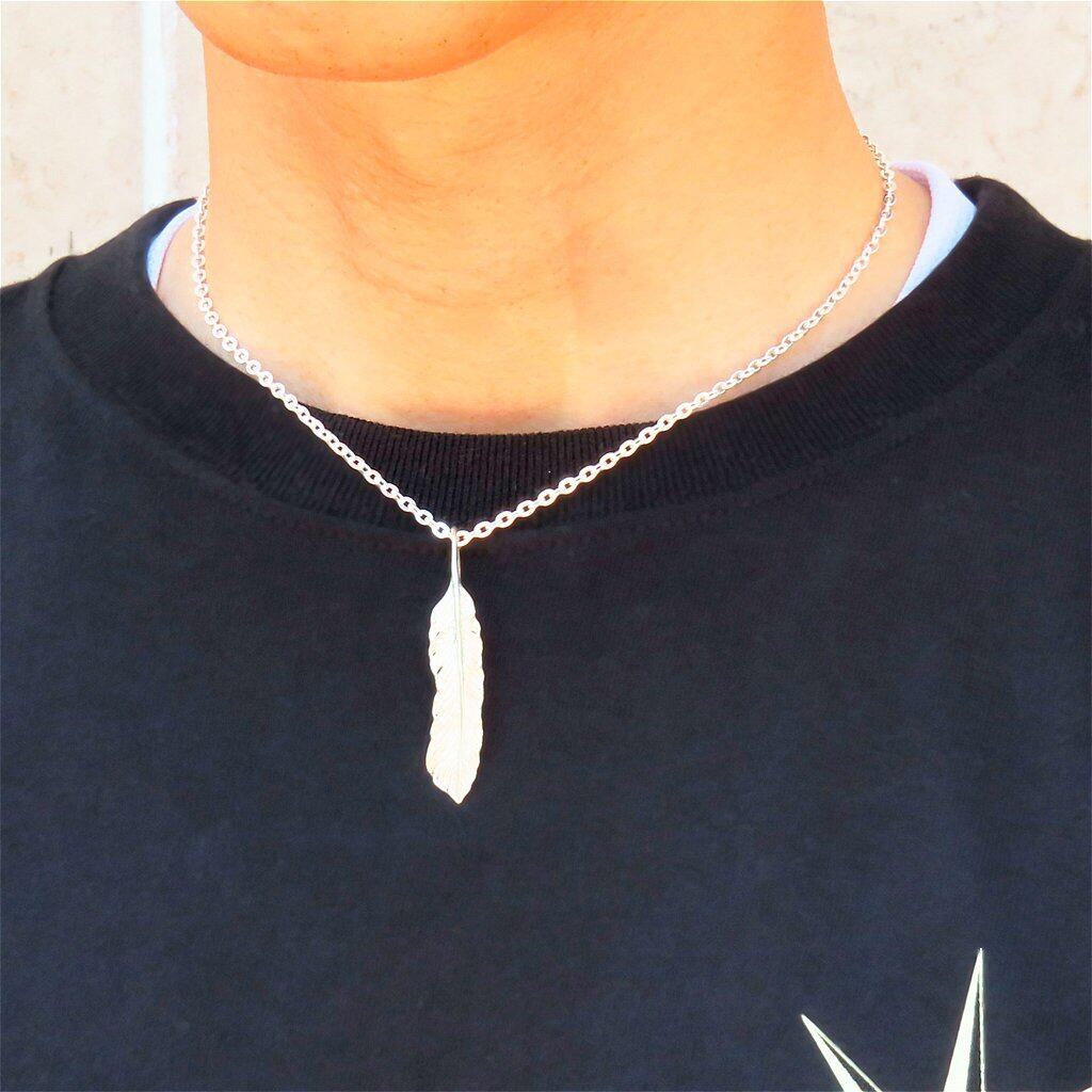 フェザーネックレス シルバー925 【刻印無料】 フェザー 羽 羽根 ネックレス ペンダント シルバーアクセサリー メンズ 男性 彼氏 ハンドメイド 記念日 クリスマス 誕生日 お祝い プレゼント ジュエリーボックス 箱 Grand Galleria グランドガレリア