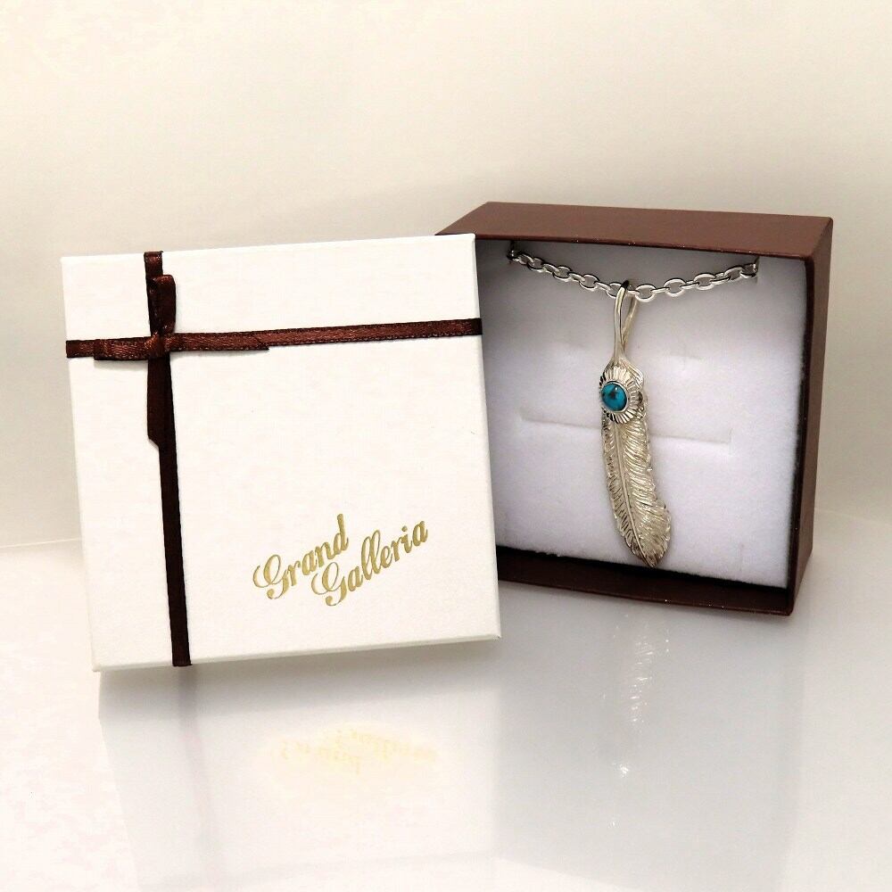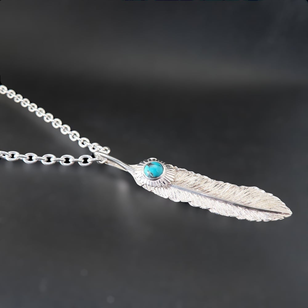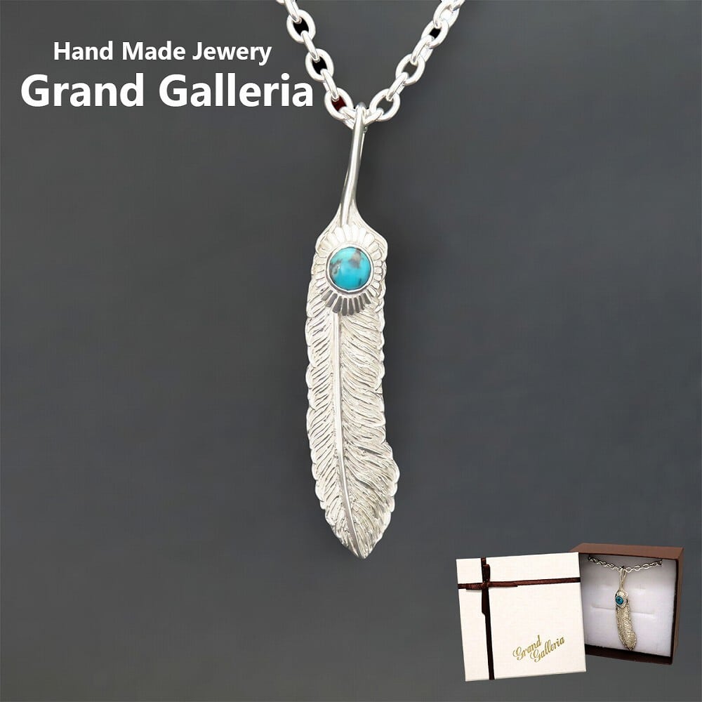 ターコイズフェザーネックレス L シルバー925 【刻印無料】 ターコイズ トルコ石 フェザー 羽 羽根 ネックレス ペンダント シルバーアクセサリー 12月 天然石 誕生石 メンズ 男性 彼氏 父の日 ハンドメイド 彫金 記念日 クリスマス 誕生日 プレゼント 箱 グランドガレリア