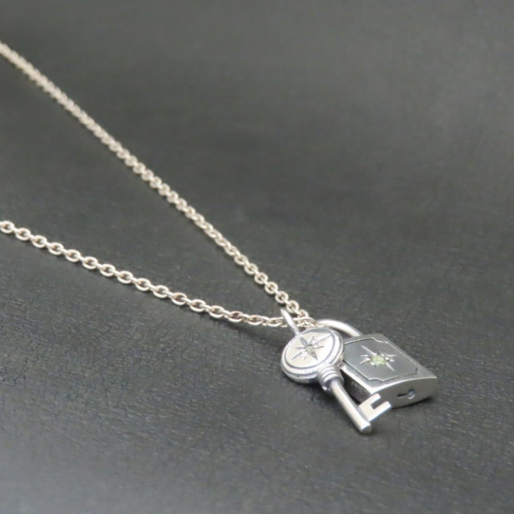 太陽鍵&南京錠ネックレス シルバー925 【刻印無料】 南京錠 鍵 カギ キー 太陽 ネックレス ペンダント 天然石 誕生石 シルバー シルバーアクセサリー メンズ ユニセックス クリスマス 誕生日 父の日 プレゼント ハンドメイド 手作り 彫金 ジュエリーボックス Grand Galleria