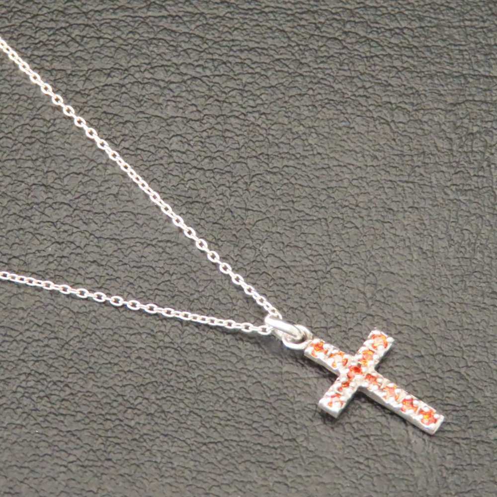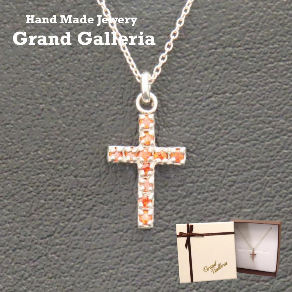 クロスネックレス シルバー925 オレンジ キュービックジルコニア 十字架 クロス ネックレス ペンダント キラキラ シルバーアクセサリー レディース 母の日 キリスト クリスマス 誕生日 プレゼント 女性 彼女 ハンドメイド 手作り 彫金 Grand Galleria グランドガレリア