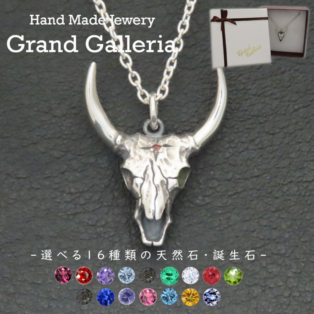 バッファロースカルネックレス シルバー925 【刻印無料】 バッファロー スカル ネックレス 太陽 サン シルバー ペンダント シルバーアクセサリー メンズ クリスマス 誕生日 プレゼント インディアン 選べる 天然石 誕生石 ハンドメイド ジュエリーボックス 箱 Grand Galleria