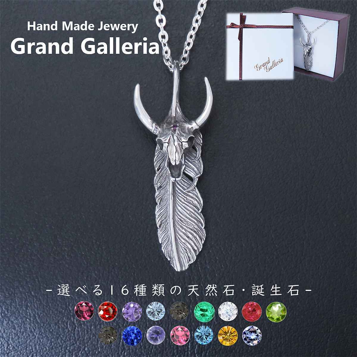 バッファロースカルフェザーネックレス シルバー925 【刻印無料】 バッファロー スカル ネックレス フェザー ペンダント シルバーアクセサリー メンズ クリスマス 誕生日 プレゼント インディアン 選べる 天然石 誕生石 ハンドメイド ジュエリーボックス 箱 Grand Galleria