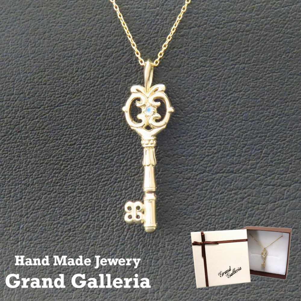 アンティークキーネックレス K10YG イエローゴールド【刻印無料】 キー 鍵 アンティーク ネックレス ペンダント シルバーアクセサリー レディース 選べる 天然石 誕生石 ハンドメイド 彫金 ジュエリーボックス クリスマス 誕生日 プレゼント Grand Galleria グランドガレリア
