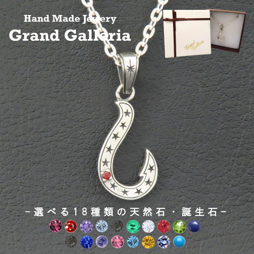 シルバー925 釣り針 ネックレス 【刻印無料】 釣り針 フィッシュフック 星 スター ペンダント シルバーアクセサリー メンズ ユニセックス クリスマス 誕生日 プレゼント 天然石 誕生石 ハンドメイド 手作り 彫金 ジュエリーボックス 箱 Grand Galleria グランドガレリア