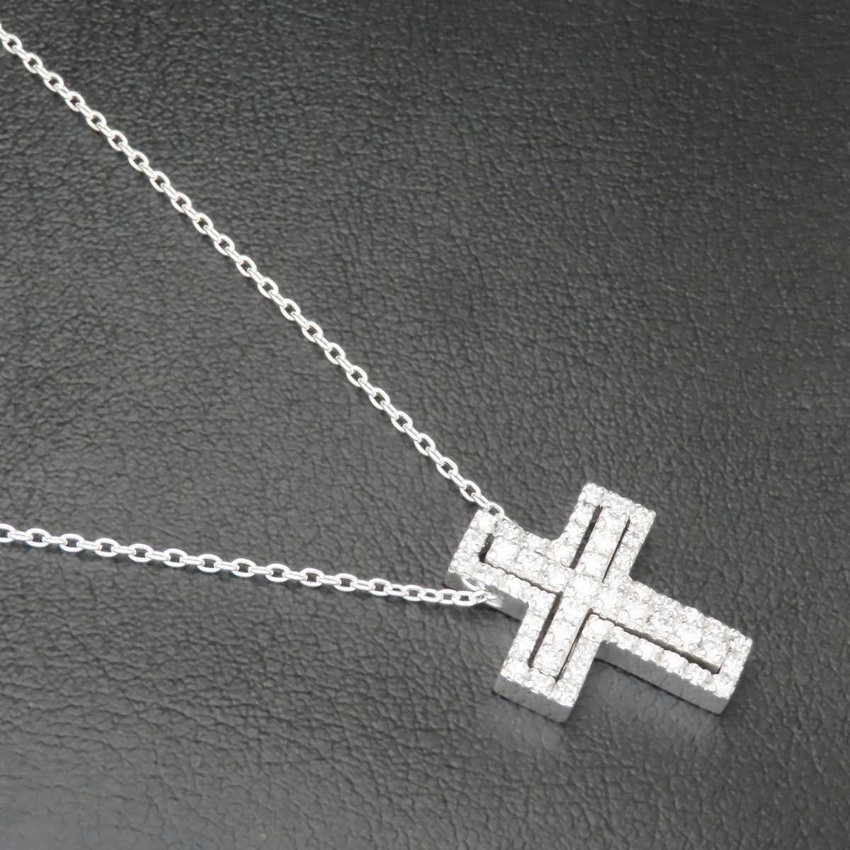 クロスネックレス シルバー925 【刻印無料】 キュービックジルコニア 十字架 クロス ネックレス ペンダント キラキラ シルバーアクセサリー メンズ ユニセックス 母の日 キリスト クリスマス 誕生日 プレゼント ハンドメイド 手作り 彫金 Grand Galleria グランドガレリア