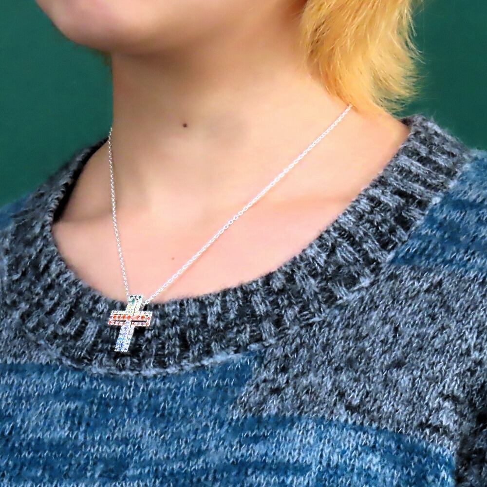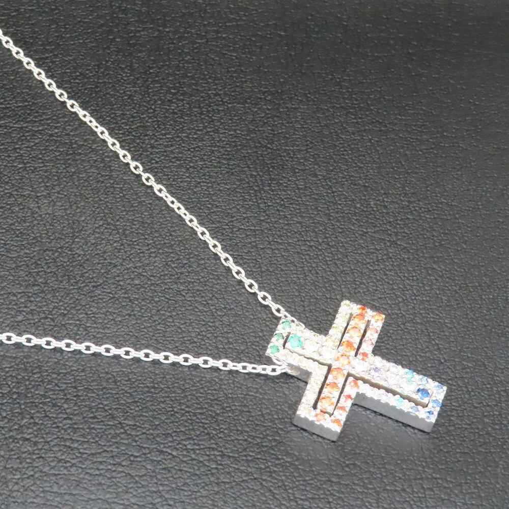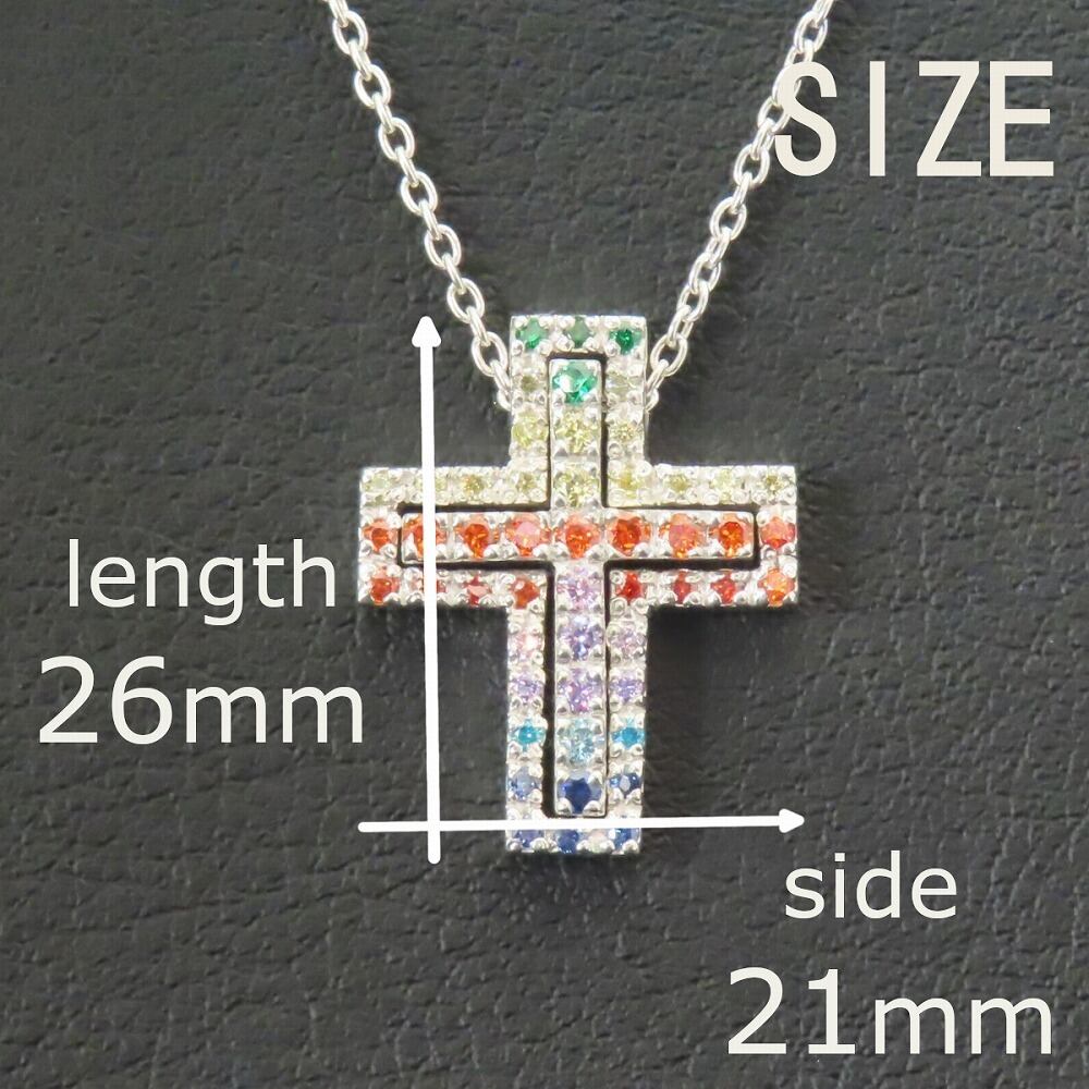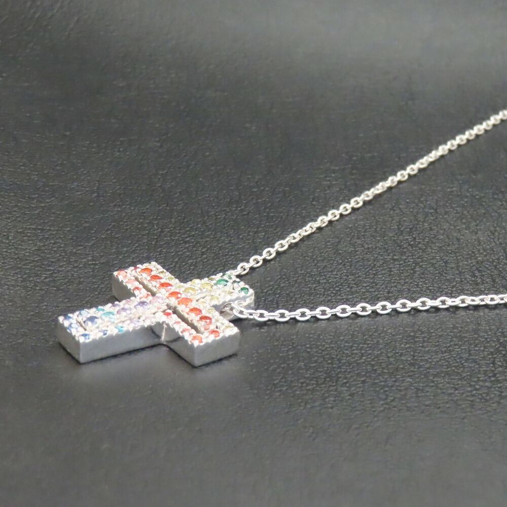マルチカラークロスネックレス シルバー925 【刻印無料】 マルチカラー キュービックジルコニア 十字架 クロス ネックレス ペンダント キラキラ シルバーアクセサリー メンズ ユニセックス 母の日 キリスト クリスマス 誕生日 プレゼント Grand Galleria グランドガレリア
