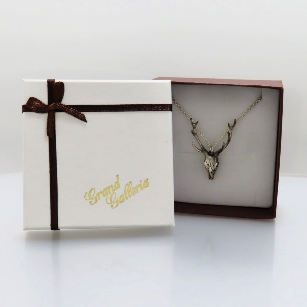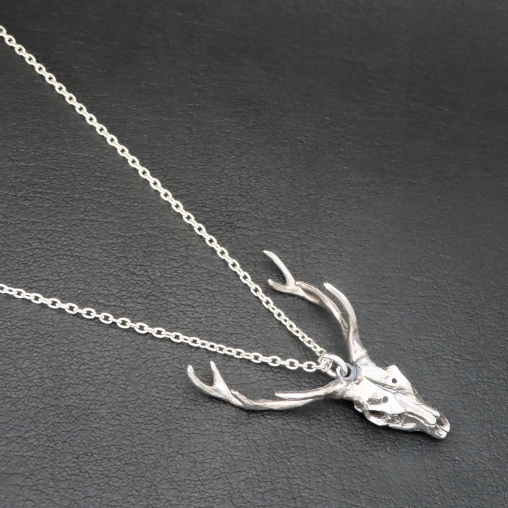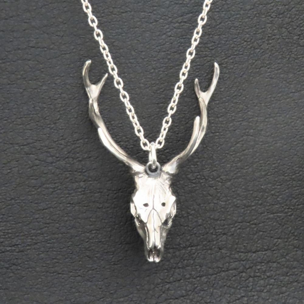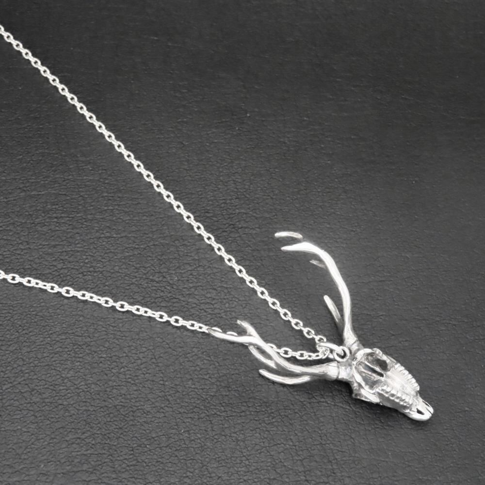 鹿スカルネックレス シルバー925 【刻印無料】 雄 オス 鹿 骨 スカル 頭蓋骨 蝦夷鹿 エゾシカ エゾ鹿 ディア 角 ネックレス ペンダント シルバー925 シルバーアクセサリー メンズ 男性 彼氏 手作り 記念日 クリスマス 誕生日 プレゼント Grand Galleria グランドガレリア