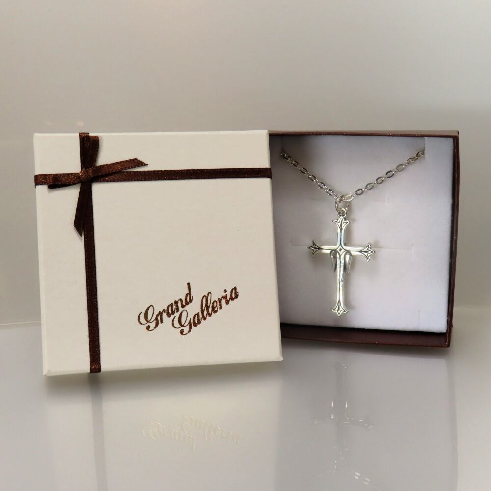 クロスネックレス シルバー925 【刻印無料】 十字架 クロス ネックレス ペンダント シルバーアクセサリー メンズ ユニセックス キリスト キリスト教 クリスマス 誕生日 プレゼント ハンドメイド 手作り 彫金 ジュエリーボックス 箱入り Grand Galleria グランドガレリア