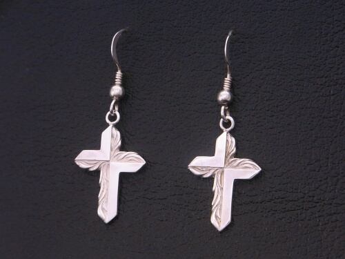 【両耳】【Grand Galleria グランドガレリア】 唐草模様 アラベスク クロス 十字架 ピアス シルバー シルバーアクセサリー シルバー925 ハンドメイド 手作り メンズ ユニセックス 彼氏 誕生日 プレゼント ギフト包装
