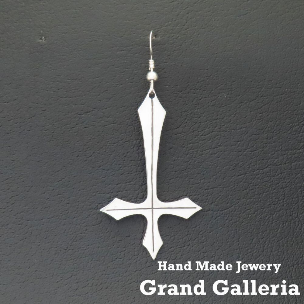 逆十字ピアス XL シルバー925 【刻印無料】 片耳 聖ペテロ 逆十字 ペテロクロス 十字架 シルバーアクセサリー メンズ ユニセックス クリスマス 誕生日 プレゼント ハンドメイド 手作り キリスト教 カトリック ローマ教皇 ジュエリーボックス Grand Galleria グランドガレリア