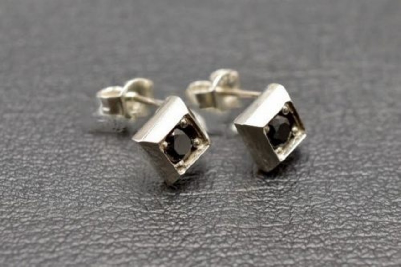 【両耳】【Grand Galleria グランドガレリア】 スクエア 四角 ブラック キュービックジルコニア ピアス シルバー シルバーアクセサリー シルバー925 ハンドメイド 手作り ユニセックス 彼氏 彼女 誕生日 プレゼント ギフト包装