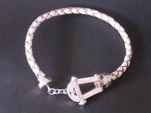 【送料無料】 【Grand Galleria グランドガレリア】 馬蹄型 ホースシュー ブレスレット ホワイト 白 腕回り15~25cm 牛革 レザー シルバー シルバーアクセサリー シルバー925 ハンドメイド 手作り メンズ 彼氏 誕生日 プレゼント ギフト包装