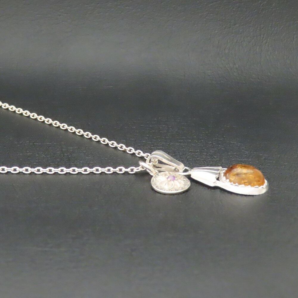 太陽チャーム琥珀ネックレス シルバー925 【刻印無料】 琥珀 コハク アンバー 太陽 サン ネックレス ペンダント 選べる 天然石 誕生石 シルバーアクセサリー メンズ ユニセックス ハンドメイド ジュエリーボックス クリスマス プレゼント Grand Galleria グランドガレリア