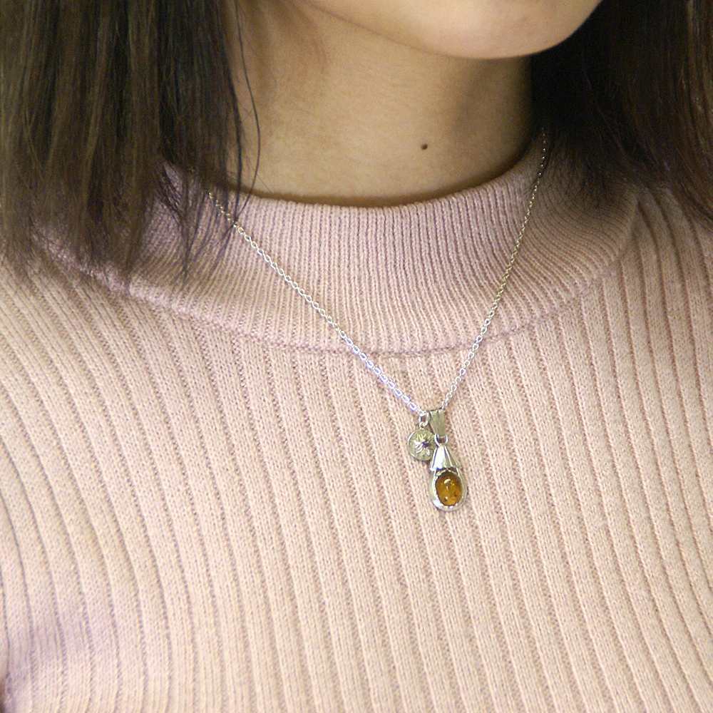 太陽チャーム付き琥珀ネックレス(PDT-372)