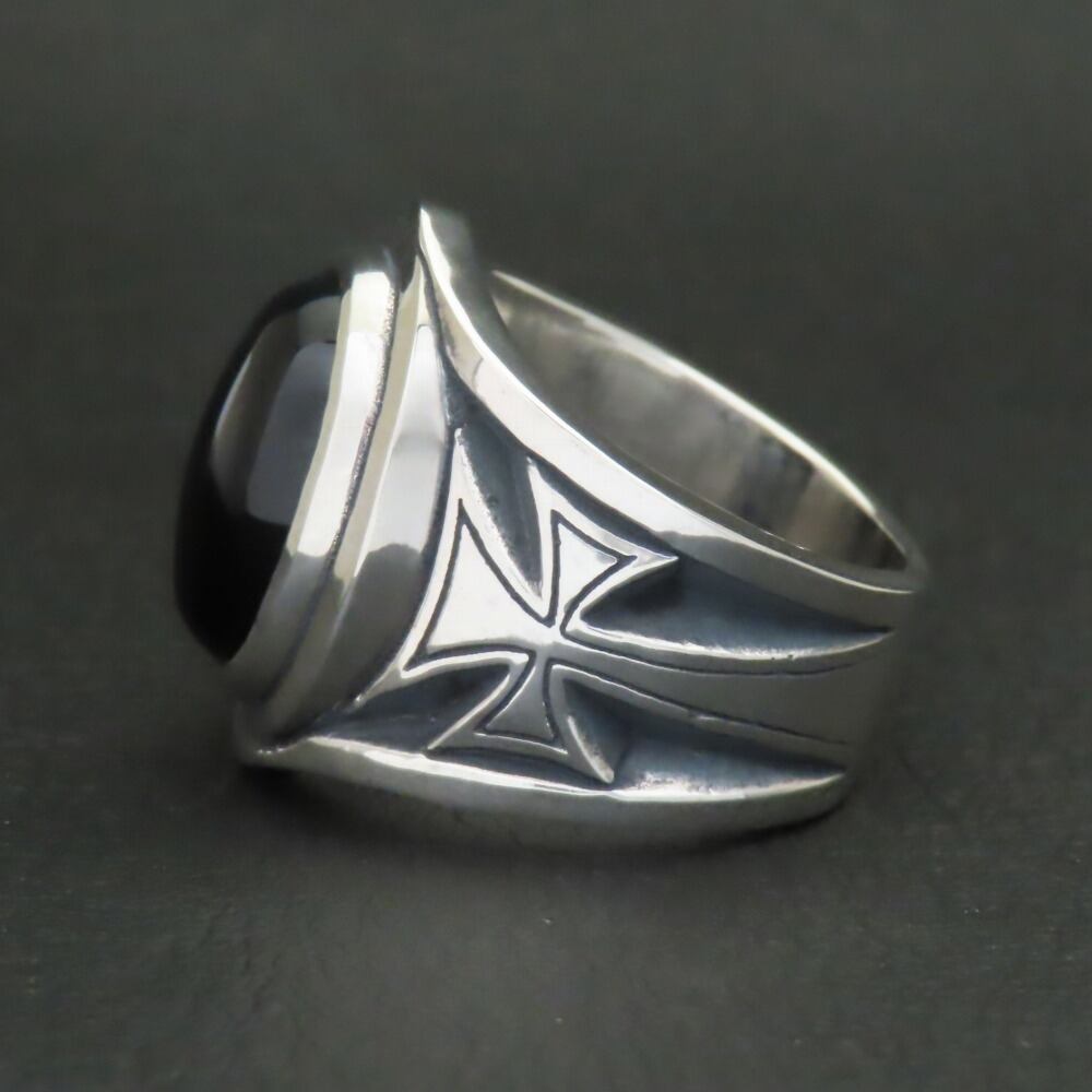 オニキスクロスリング シルバー925 指輪 【刻印無料】 オニキス クロス 十字架 リング 天然石 シルバーアクセサリー メンズ クリスマス キリスト 誕生日 記念日 お祝い 彼氏 男性 父の日 プレゼント ハンドメイド 彫金 ジュエリーボックス Grand Galleria グランドガレリア