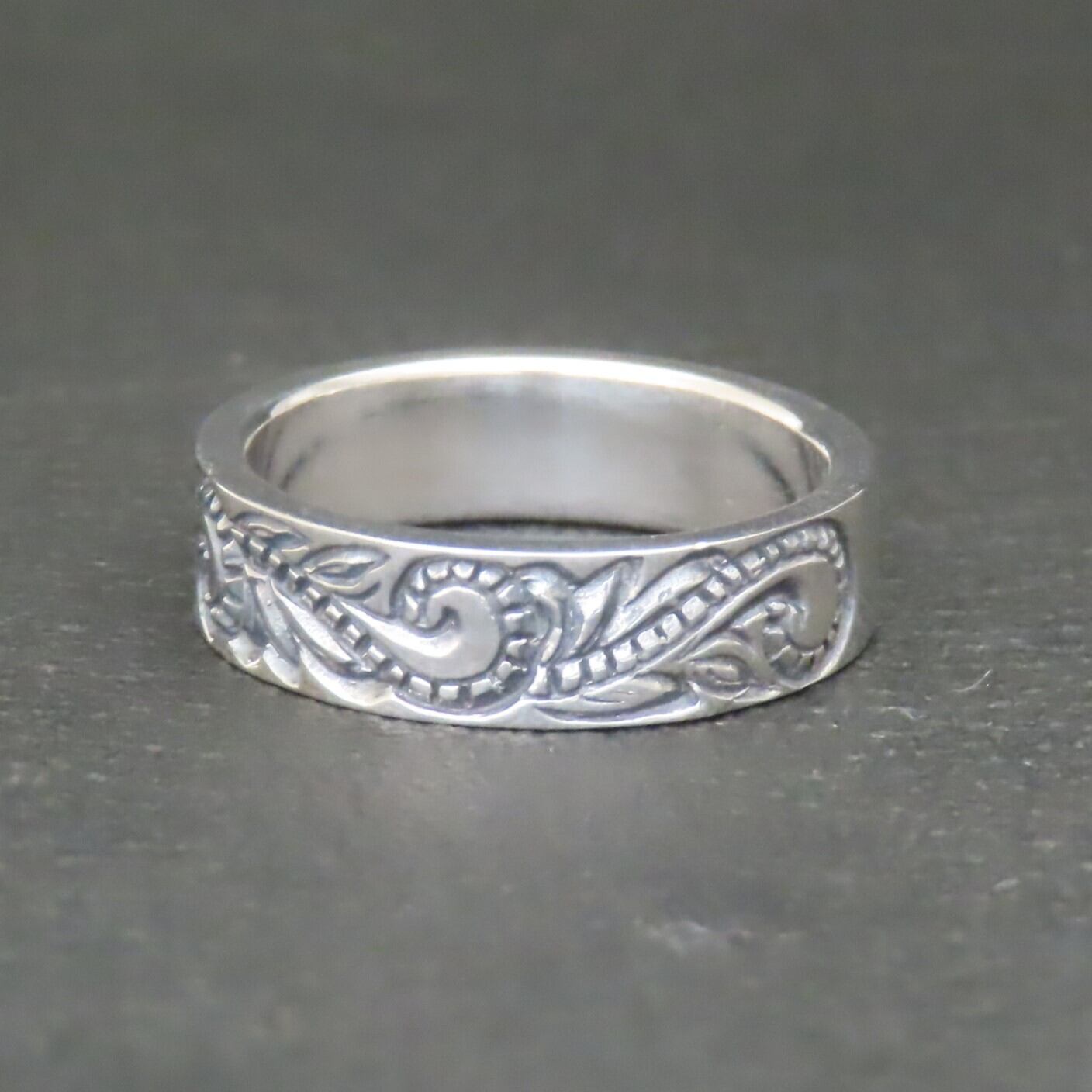ハワイアンジュエリー リング 黒 指輪 シルバー925 【刻印無料】 スクロール 波 波模様 ハワイアン シルバーアクセサリー メンズ レディース ユニセックス ペアリング 誕生日 プレゼント ハンドメイド 手作り 彫金 箱 ジュエリーボックス Grand Galleria グランドガレリア