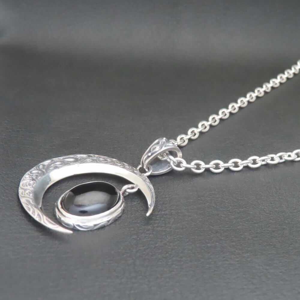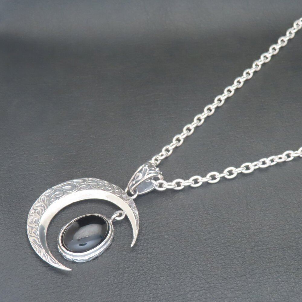 三日月オニキスネックレス シルバー925 【刻印無料】 月 三日月 ムーン オニキス ネックレス ペンダント シルバーアクセサリー 天然石 メンズ ユニセックス クリスマス 誕生日 記念日 お祝い 彼氏 彼女 母の日 父の日 ギフト 箱 プレゼント Grand Galleria グランドガレリア
