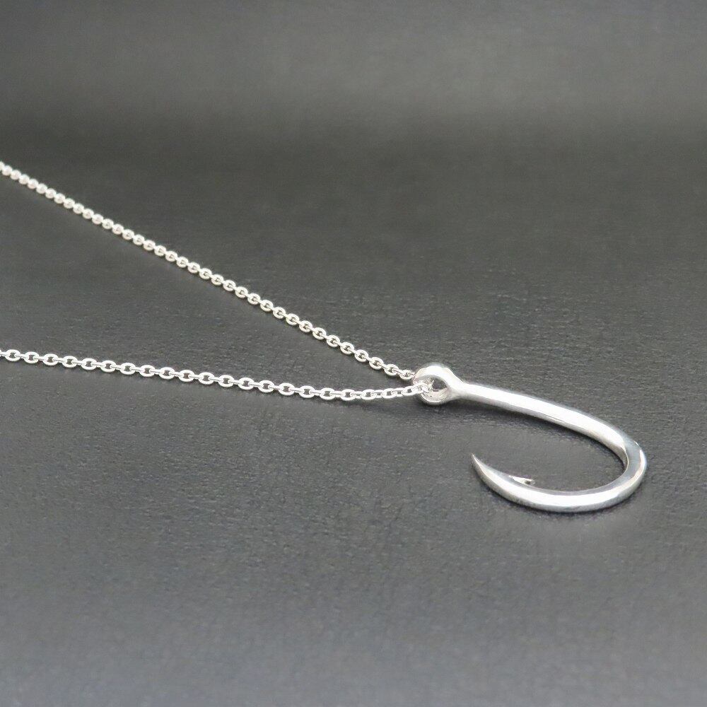 釣り針ネックレス M シルバー925 左【刻印無料】 釣り針 フィッシュフック ネックレス ペンダント シルバーアクセサリー メンズ シンプル アングラー 大漁祈願 クリスマス 誕生日 プレゼント ギフト 父の日 ハンドメイド 手作り 彫金 箱 Grand Galleria グランドガレリア