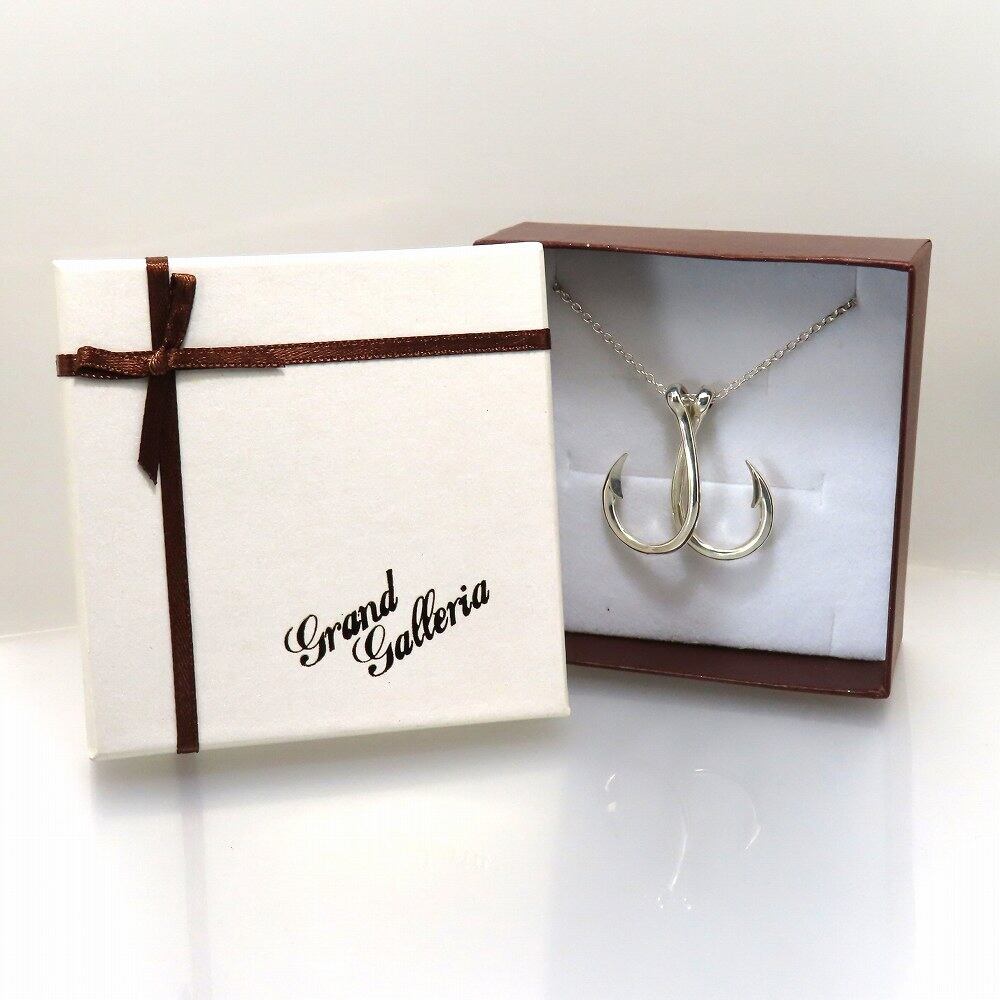 釣り針ネックレス M ダブルフック シルバー925 【刻印無料】 釣り針 フィッシュフック ネックレス ペンダント シルバーアクセサリー メンズ シンプル アングラー 大漁祈願 クリスマス 誕生日 プレゼント ギフト 父の日 ハンドメイド 彫金 箱 Grand Galleria グランドガレリア