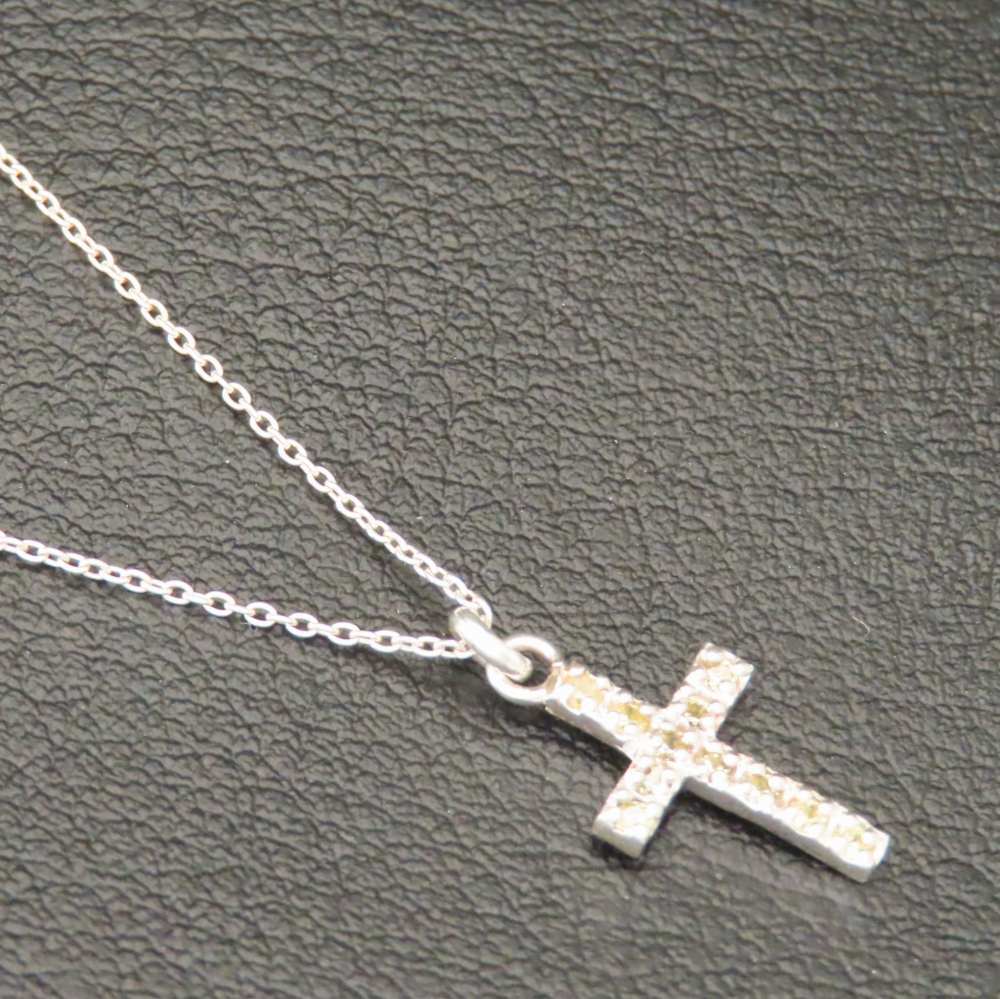 クロスネックレス シルバー925 イエロー 黄色 キュービックジルコニア 十字架 クロス ネックレス ペンダント キラキラ シルバーアクセサリー レディース 母の日 キリスト クリスマス 誕生日 プレゼント 女性 彼女 ハンドメイド 手作り 彫金 Grand Galleria グランドガレリア